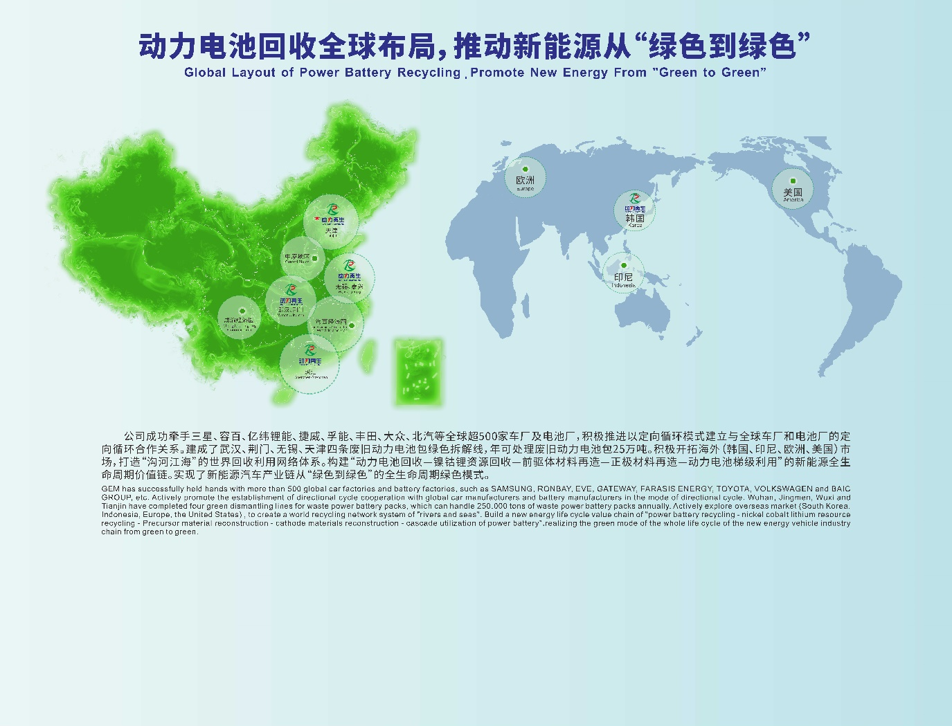 GEM has been engaged in the recycling industry for 20 years, has strong technology and profound industrial heritage, has a world-leading position in the layout of recycling industry, dismantling and waste processing and battery materials, and has the advantages of the whole industrial chain of batteries.