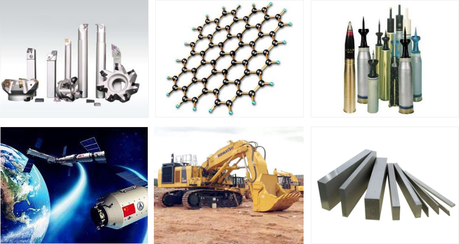 Downstream application scenarios:mainly used for the preparation of cemented carbide, specifically can be applied to machinery manufacturing, mining and excavation, iron and steel industry, national defense and military industry, oil drilling, electronic information and other fields.