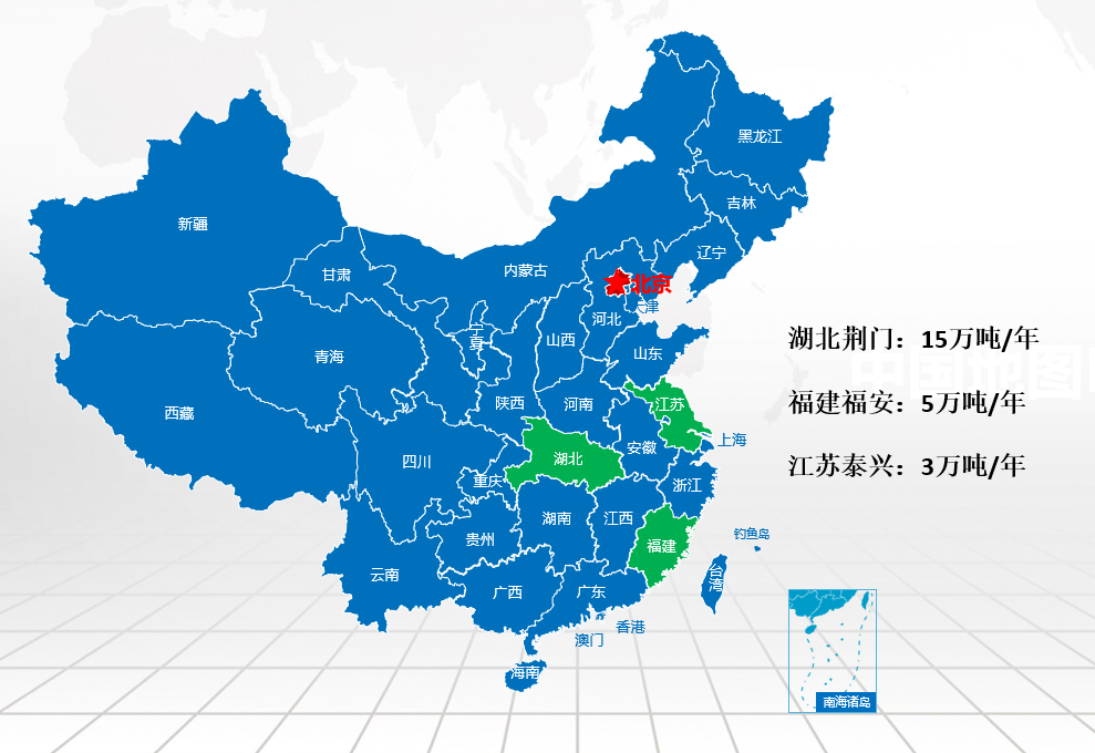 Jingmen 150,000 tons / year + Fu'an 50,000 tons / year + Taixing 30,000 tons / year
